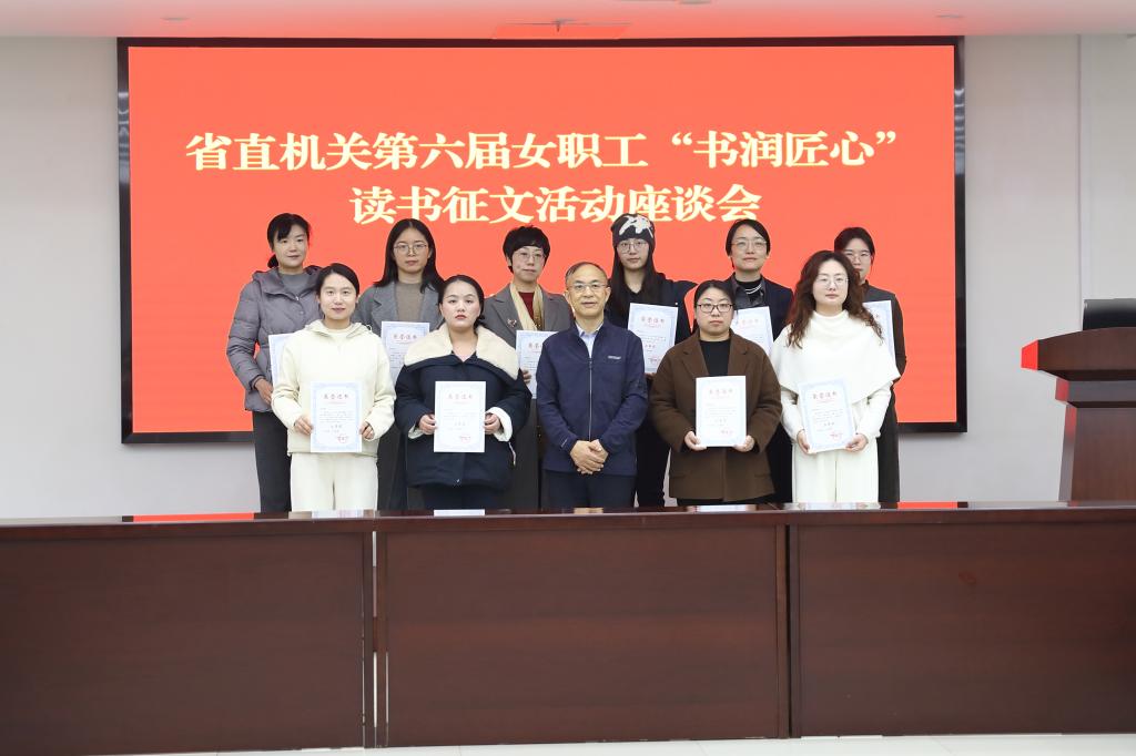 12月19日下午,省直机关第六届女职工“书润匠心”读书征文活动颁奖座谈会在省委党校召开。我校工会凭借出色的组织,获评“优秀组织奖”;选送的作品表现亮眼,喜获二等奖2项。校工会女工委负责人及获奖代表参加座谈。