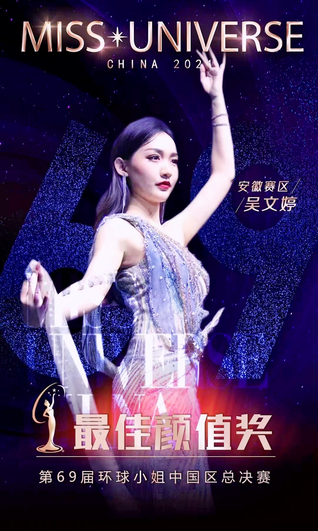 本届环球小姐中国区总决赛相比往届,在内容呈现及表现形式上,融入更多丰富、创新的元素,赛事全程线上线下联动,掀起一股独具特色的时尚热潮。这是一场对言谈、举止、个性、体态、心理素质等全方位进行考核的综合选拔赛事,也是一个代表中国走向世界的国际舞台。在历时3个月的比赛时间里,吴文婷经历了海选、全省总决赛、封闭式集训、84进69全国半决赛、69强全国总决赛,一路发挥出色,从安徽赛区的季军走向了中国区总决赛,最终代表安徽赢得第69届环球小姐中国区总决赛最佳颜值奖。