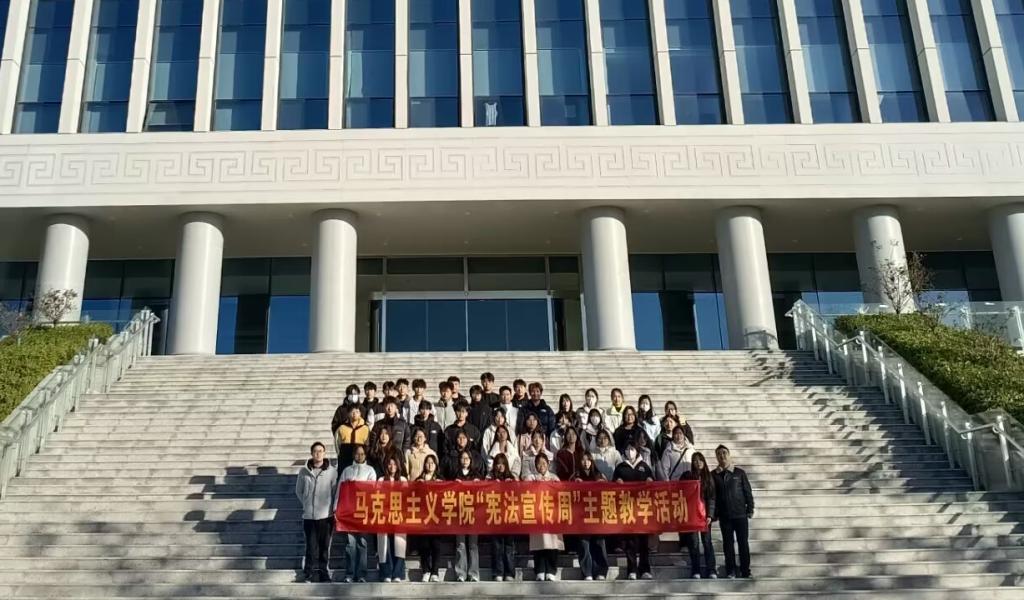 课堂理论教学,聚焦理论教学,筑牢依法治理根基。马克思主义学院利用“形势与政策”课程开展“大力弘扬宪法精神,推动进一步全面深化改革”主题教学,通过宪法普法视频、教师讲解和师生互动,了解新中国宪法发展历程和宪法的地位作用,明确习近平法治思想、新中国成立75年来特别是党的十八大以来全面依法治国取得的历史性成就、依宪执政的实施路径。