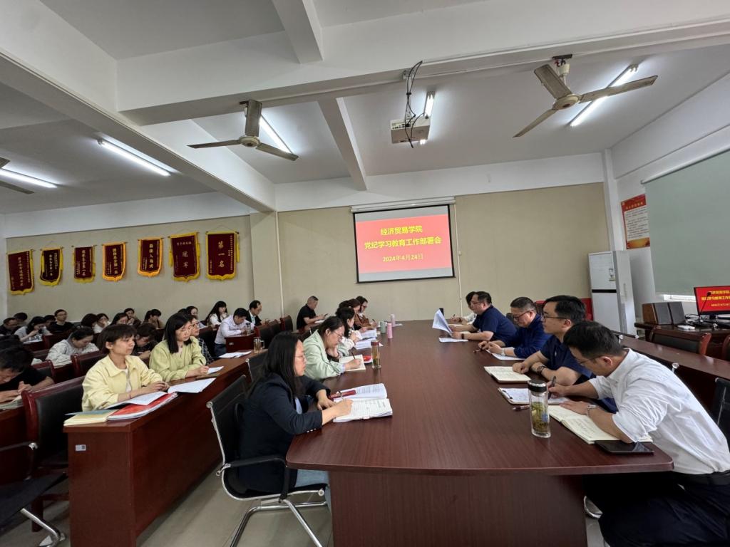 会议指出,在全党开展党纪学习教育,是以习近平同志为核心的党中央作出的重大决策,是加强党的纪律建设、推动全面从严治党向纵深发展的重要举措。要深入学习贯彻习近平总书记关于党纪学习教育的重要讲话和重要指示精神,把党纪学习教育作为重要政治任务,坚持从学党纪入手,做实各项工作,推动经济贸易学院从严抓好党的纪律建设,推动广大党员干部强化遵守纪律的自觉,以严明的纪律坚决拥护“两个确立”、坚决做到“两个维护”,保障学院各项事业发展。