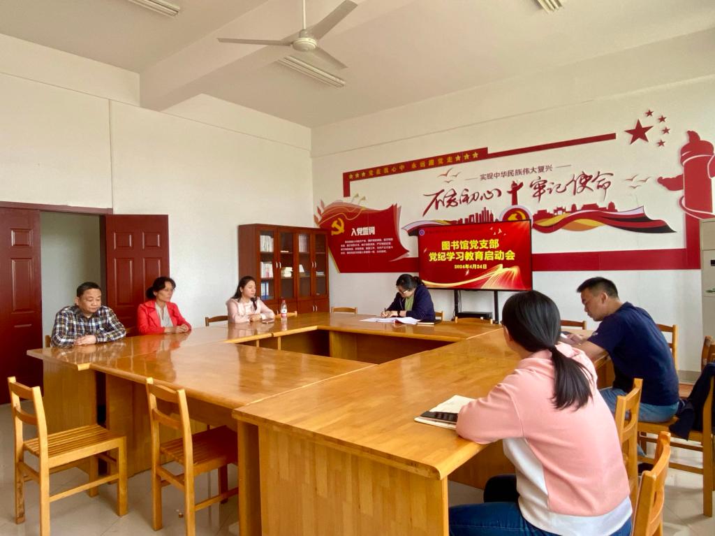 4月24日下午,图书馆党支部根据《beat365中文官方网站党纪学习教育工作方案》精神要求,在党员活动室召开党纪学习教育工作启动会,党支部组织委员藕海云主持会议,全体党员同志和民主党派人士参加。