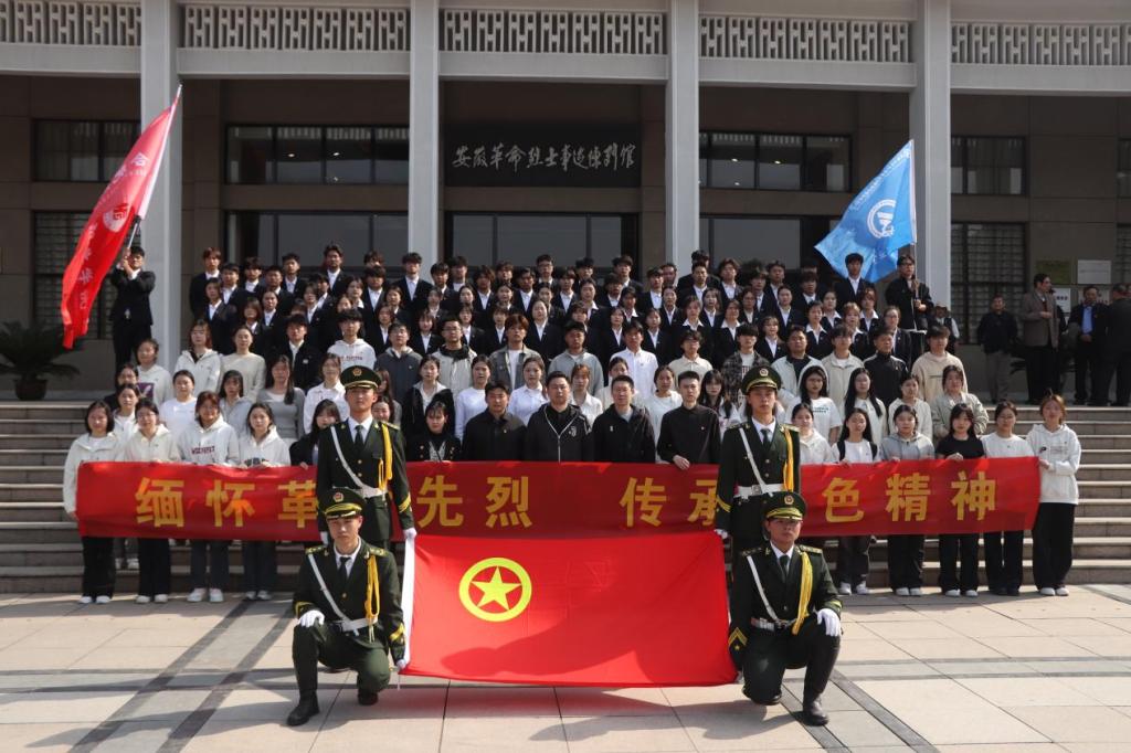 纪念碑前庄严肃穆,全体人员奏唱国歌,团员重温入团誓词,师生默哀鞠躬、敬献花篮,深切缅怀革命先烈,表达崇敬追思之情。随后,众人参观安徽革命烈士事迹陈列馆,学习江淮英烈事迹,感悟中国共产党人的初心使命。