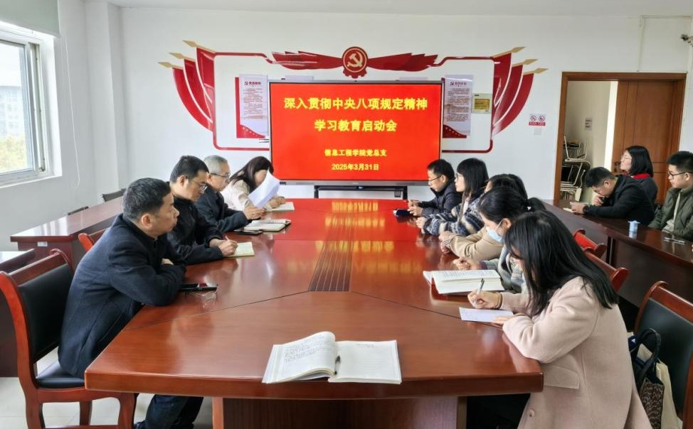 3月31日中午,信息工程学院党总支召开深入贯彻中央八项规定精神学习教育启动会。党总支书记邓庆安主持会议并作动员讲话,学院全体党员老师参加会议。