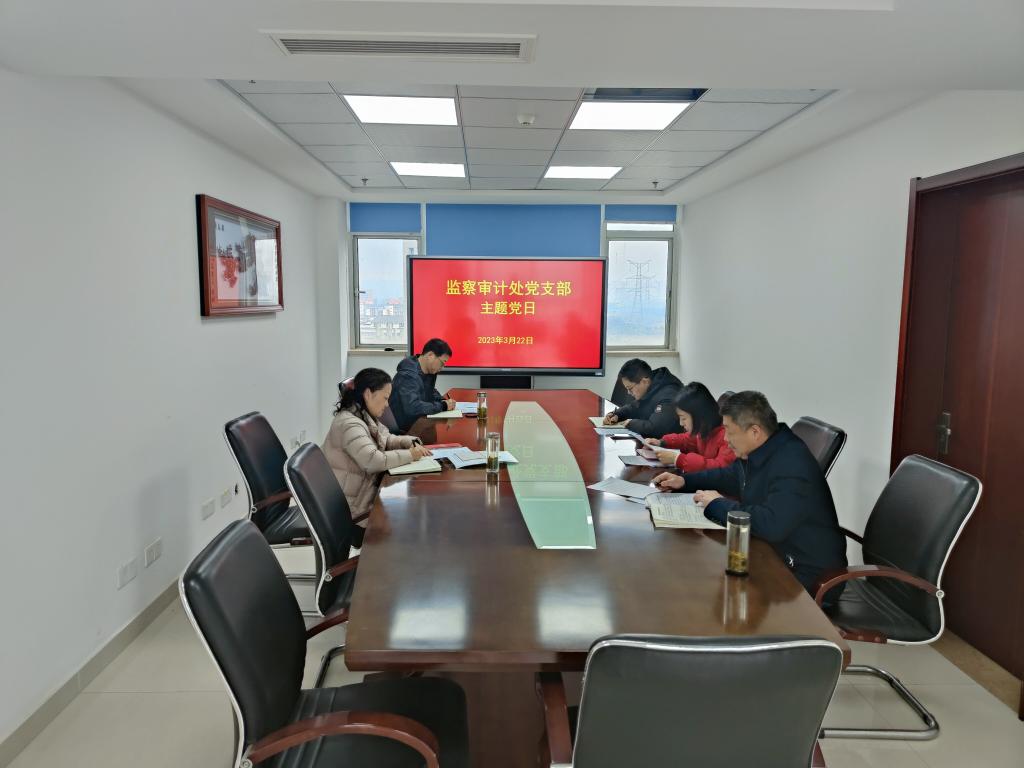 3月22日下午,监察审计处党支部在行政楼916会议室开展主题党日活动,党委委员、纪委书记罗虹以普通党员身份参加,会议由党支部书记王良斌主持。