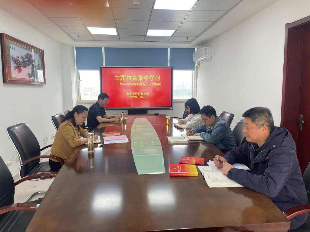 5月6日下午,监察审计处党支部在行政楼916会议室围绕深入学习宣传贯彻党的二十大精神开展主题教育集中学习,支部书记王良斌主持会议,学校党委委员、纪委书记罗虹以普通党员身份参加。