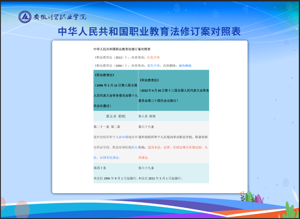 《中华人民共和国职业教育法》修订案对照表