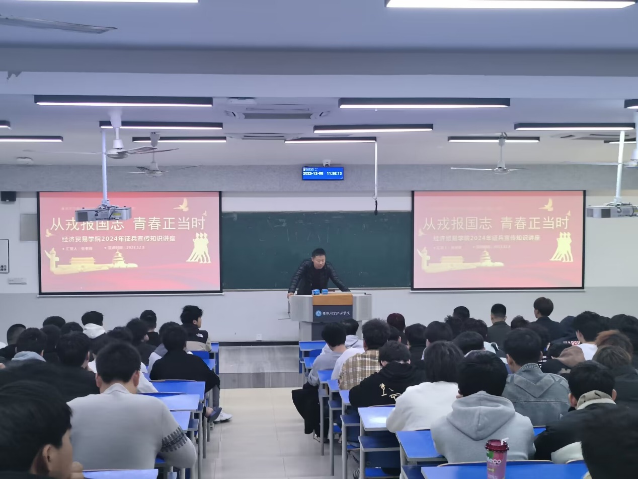 从戎报国志,青春正当时。军营是温暖人心的大家庭、培养人才的大学校,是历练人生的大熔炉、施展才华的大舞台,希望更多青年学子能够到火热的军营去放飞梦想、强健体格、砺炼品质,到祖国最需要、最艰苦的地方去施展才华、建功立业、实现价值!此次征兵政策宣讲,增强了参会人员对征兵政策的了解,为后续经济贸易学院高标准、高质量完成2024年春季征兵工作奠定了良好基础。接下来,经济贸易学院征兵工作将按照上级统一部署,严格执行各项程序步骤,确保圆满按时完成征兵任务。(供稿:张飞龙 审稿:陶云龙)