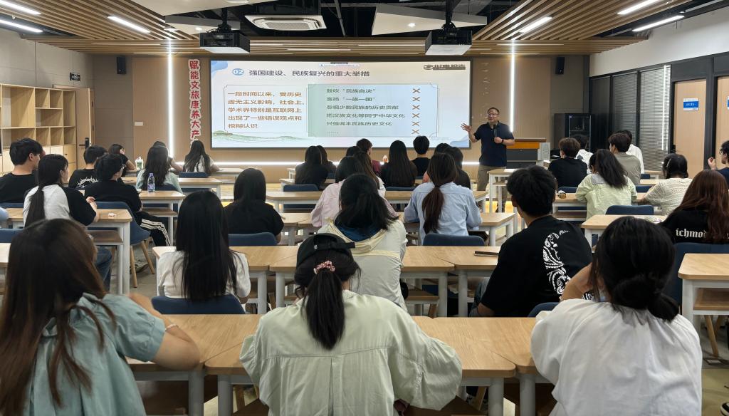 在报告会上,刘大俊以《铸牢中华民族共同体意识》为主题,从应对各种风险的战略决策、强国建设与民族复兴的重大举措以及加强改进民族工作的根本指针三个方面强调了铸牢中华民族共同体意识的重要战略意义。他提出民族思想团结工作既关系国家安全及发展利益,又关系中华民族伟大复兴战略全局,要增进“五个认同”、树立“四个共同”、根植“四个与共”、把握“四个关系”。刘大俊鼓励同学们坚定理想信念,努力成长为担当民族复兴大任的时代新青年。