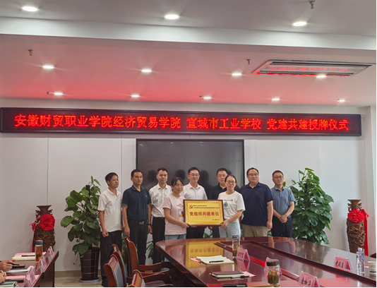 随后,王海龙参加了经济贸易学院党总支和宣城市工业学校的党建共建授牌仪式。王海龙指出,党建共建是加强党的领导、推进事业高质量发展的重要举措和有效形式,全面加强党的建设,以高质量党建引领人才培养工作是学校发展道路上的使命与责任。