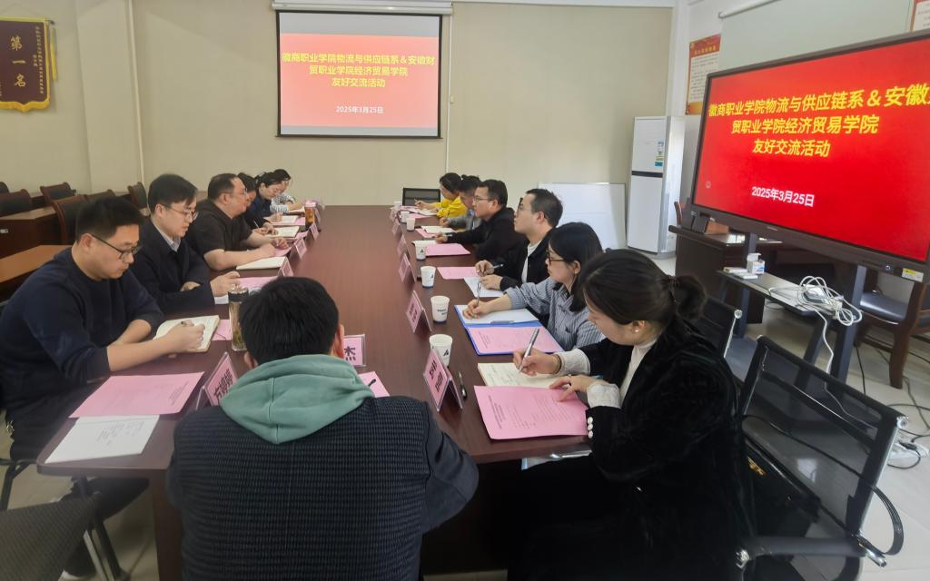 3月25日下午,徽商职业学院物流与供应链系党总支副书记、副主任(主持工作)汪志林一行7人来校交流,经济贸易学院党总支书记刘大俊等人参加了交流座谈。