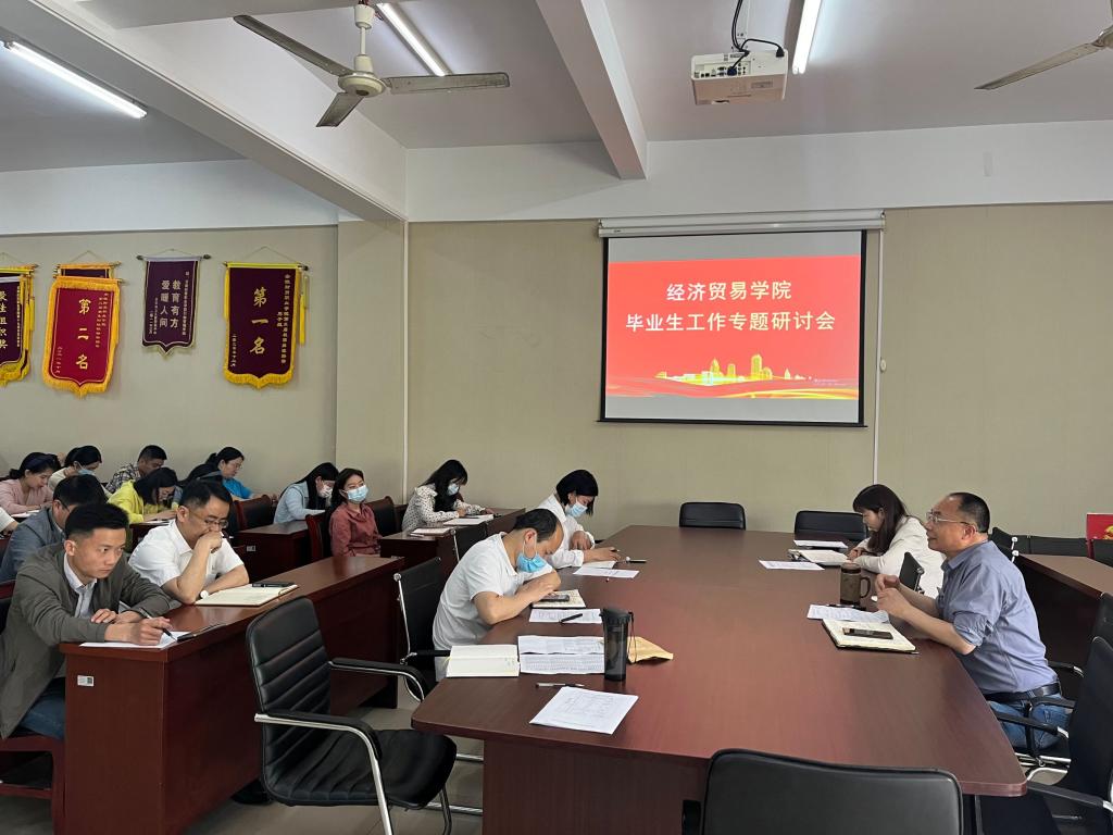 为深入了解学院2022届毕业生就业工作,进一步推进学院就业工作顺利开展,4月27日中午,经济贸易学院召开就业工作专题研讨会。经济贸易学院党总支书记陶云龙、副书记丁蓉以及毕业班全体辅导员参加会议。会议由党总支副书记丁蓉主持。