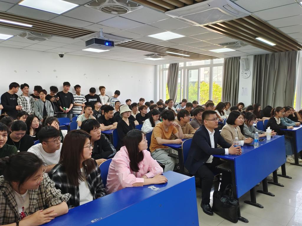 4月12日下午,经济贸易学院定期举办“春风送暖、勇往‘职’前” 毕业生专场招聘会。经济贸易学院党支部书记陶云龙、副书记丁蓉、教研室主任夏承龙及辅导员和学院就业工作人员参加宣讲会,同时邀请学生处就业指导中心主任巢勇前来现场指导。