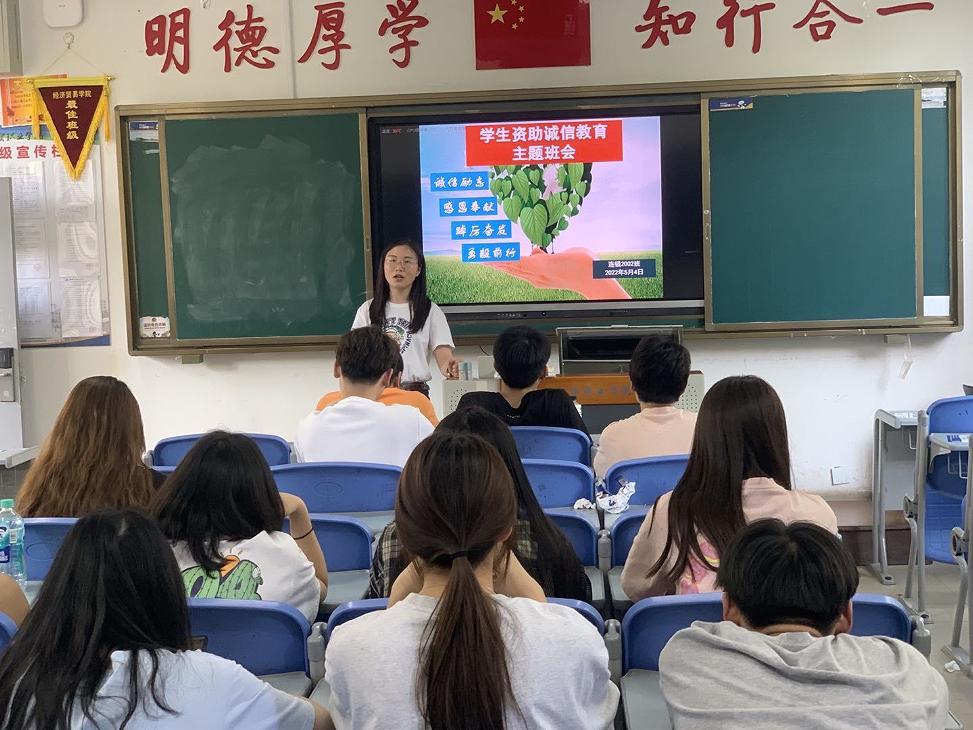 为深入推进资助育人,增强当代大学生的诚信意识和责任担当,根据学校《关于开展第九届学生资助诚信教育主题月活动的通知》(学〔2022〕26号)文件精神。5月2日--5月31日,经济贸易学院集中开展了以“诚信励志 感恩奉献 踔厉奋发 勇毅前行”为主题的学生资助诚信教育主题月系列活动。