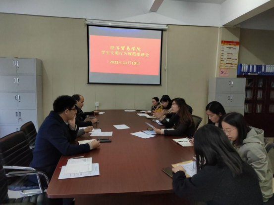 建设文明校园,让文明之花绽放校园。根据学校《进一步加强学生校园文明规范的通知》文件要求,全面贯彻落实文件精神,切实加强学生文明行为规范,形成优良班风、建设和谐校园。经济贸易学院分别于2021年11月10日召开学生文明行为规范推进会、11月12日在5201阶梯教室举行“校园文明先行”动员大会,着力部署、扎实推进学生校园文明规范工作。