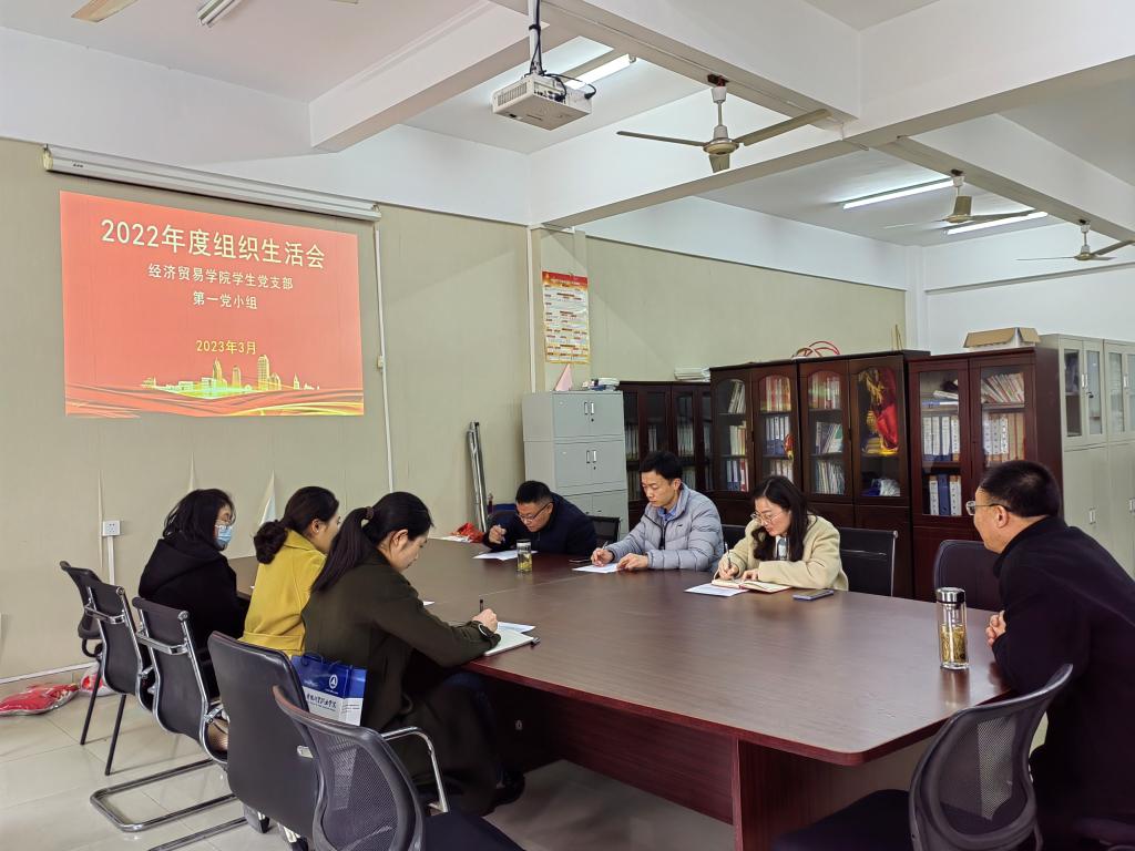 经济贸易学院学生党支部于3月1日召开2022年度组织生活会暨民主评议党员大会。党支部全体党员参加了此次会议,会议由党支部书记丁蓉主持。
