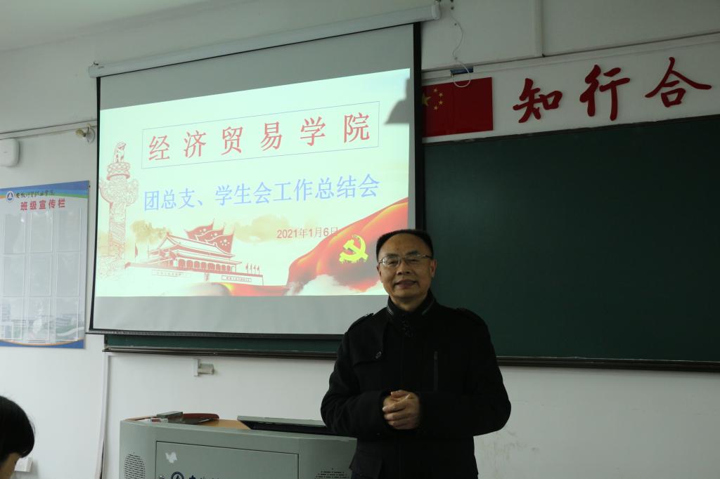 1月6日,经济贸易学院召开第一届团学组织学期总结大会。党总支书记陶云龙、副书记丁蓉、学生秘书刘桂芳、全体专职辅导员及所有团学干部参与了会议。