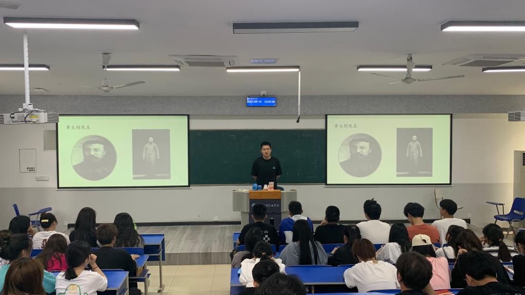 5月14日,经济贸易学院第53期党课班邀请商务经纪与代理2002班预备党员刘峰同学做《缅怀守常先生,追随先辈遗志》主题分享,党课班组织委员沈钰璇担任活动主持人,全体党课班成员参加。