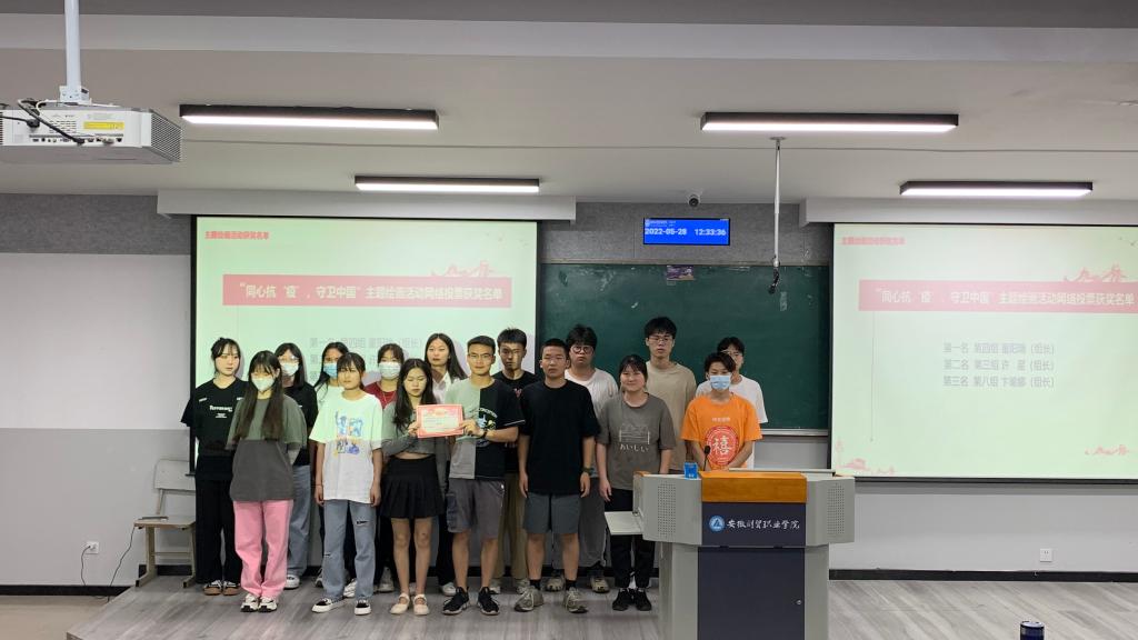 活动中,占陈芳为本次党课培训实践活动“同心抗‘疫’,守卫中国”主题绘画活动网络投票获得前三名的小组成员颁奖,为第53期党课培训班“优秀学员”颁奖,并合影留念。活动后班长杜蒙给获奖成员颁发礼品。