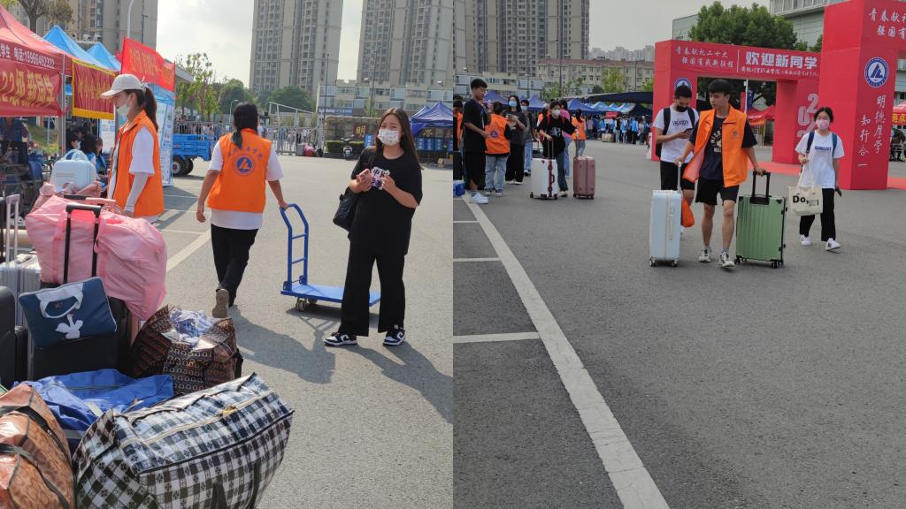 为期两天的迎新工作如火如荼,随处可见忙碌的身影。志愿者所有的付出,都是为了新同学们能更快地适应校园生活,以饱满的精神、昂扬的斗志在新的旅程上努力奔跑、追梦前行,开启人生新篇章。(供稿:胡佳 王露露 审稿:丁蓉)