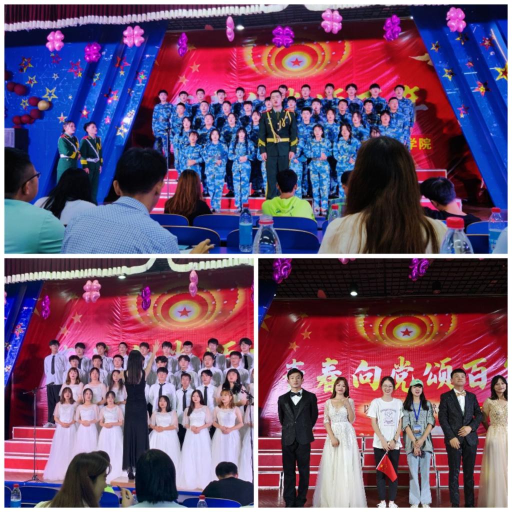 以赛促学,红歌献党。2021年9月29日,经济贸易学院举办了以“青春向党颂百年”为主题的大合唱比赛。经济贸易全体新生参与本次活动,担任评委的有经济贸易学院党总支书记陶云龙、副书记丁蓉、教师第一党支部书记朱清、教师第二党支部书记马诗琴、团总支书记张超、学生秘书刘桂芳、方伟、专职辅导员金志辉老师、张飞龙老师,出席比赛的还有全体新生辅导员。