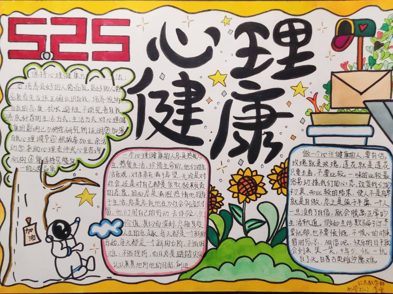 5月25日是“全国大学生心理健康日”,为缓解疫情期间同学们恐慌、焦虑等负面情绪,丰富同学们的校园生活,经济贸易学院面向全校学生开展了以“用画笔勾勒健康青春”为主题的心理健康手抄报大赛。
