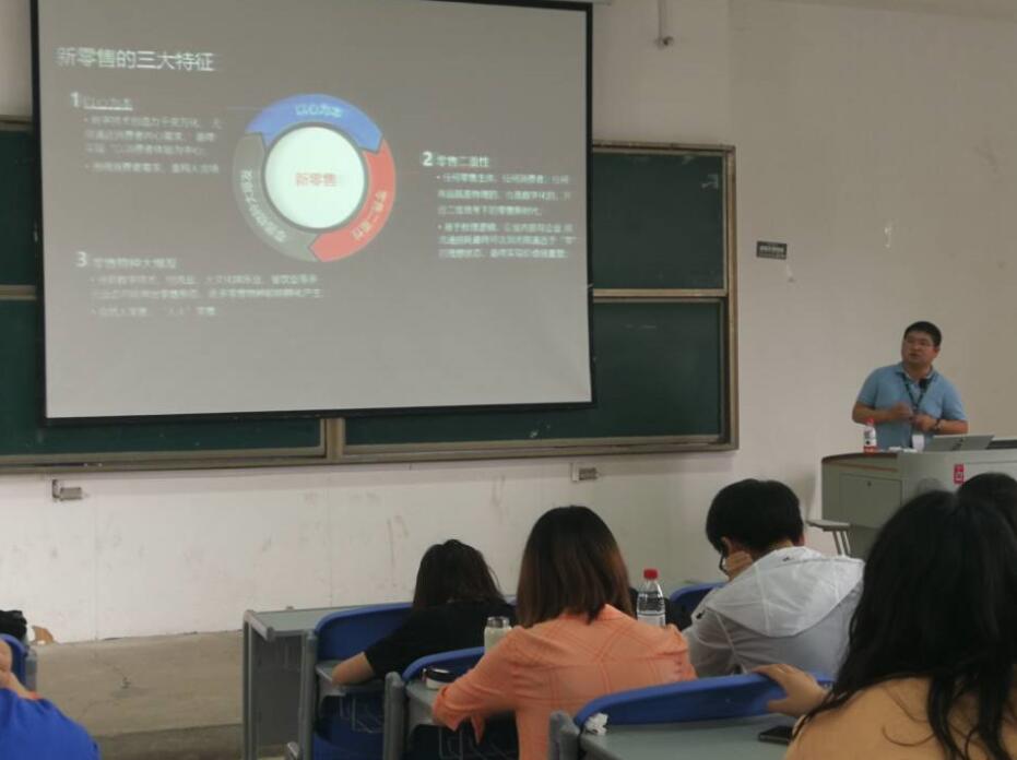 2019年5月21日,行知管理学院连锁经营管理教研室邀请安徽永辉超市有限公司生鲜营运负责人刘强走进课堂,为学生上了主题为“新时代背景下的新零售”的精彩一课。