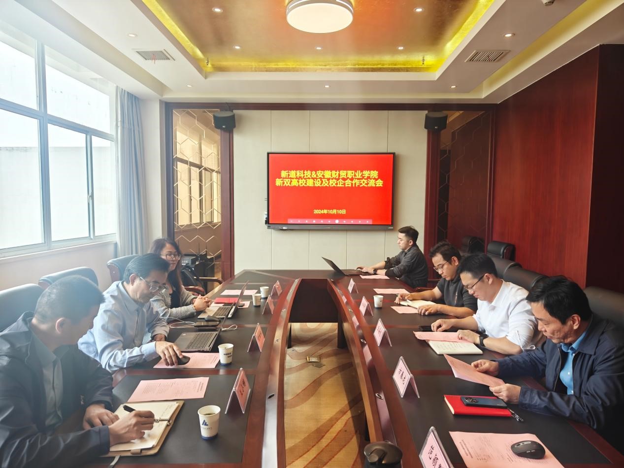 10月10日,学校与新道科技股份有限公司举行“新双高校建设与校企合作交流”会议,党委委员、副校长王海龙出席座谈会,教务处、财会金融学院、经济贸易学院负责人参加会议。