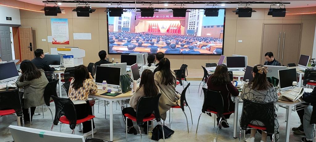 党员同志们采用线上线下、会前会上集中和自主学习相结合方式,会上集体观看了习近平总书记在纪念辛亥革命110周年大会上的讲话视频,储锐老师带领大家共同学习了习近平总书记在中央人才工作会议上的重要讲话精神,共同自学了《“四史”学习教育资料汇编》、《师德优秀典型先进事迹》、《习近平总书记关于师德师风的重要论述摘编》等内容。