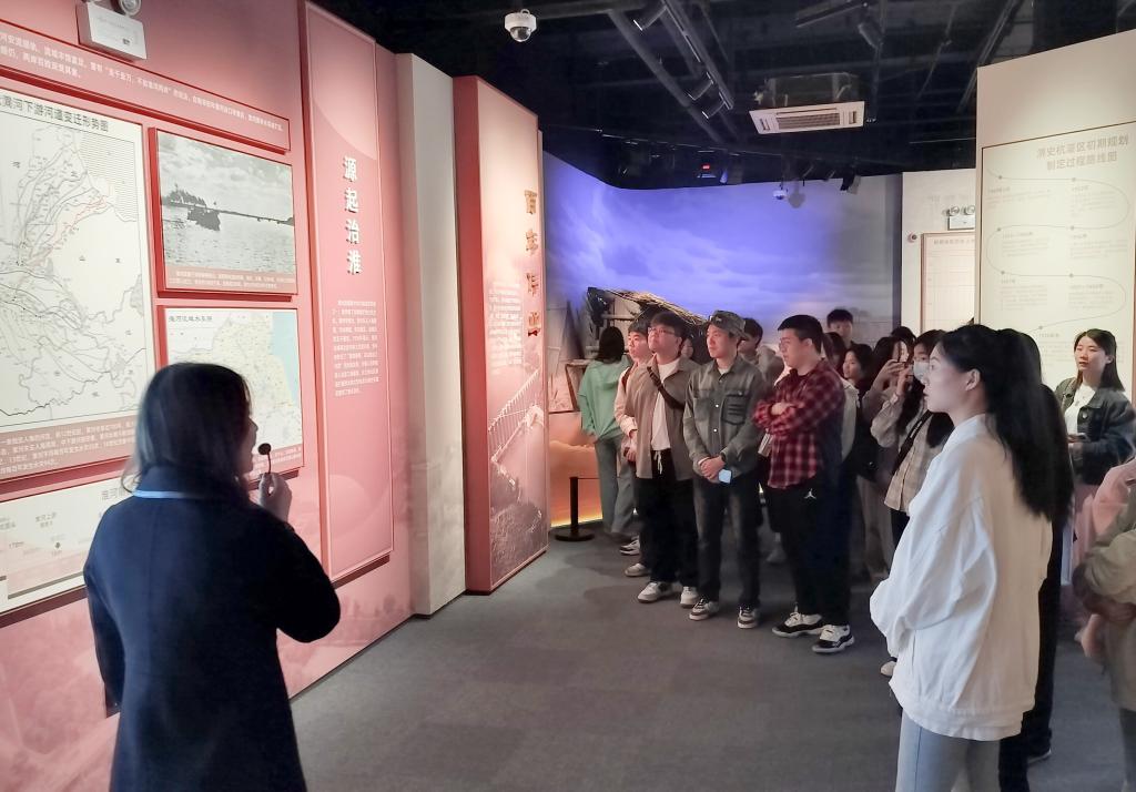 在讲解员的引领下,师生们开始了对淠史杭灌区历史的探寻之旅。展览以生动的图片、实物展示和多媒体互动形式,全面展现了淠史杭灌区的建设历程、发展成就和时代价值。师生们认真聆听讲解,不时驻足观看,深入了解淠史杭灌区的艰苦创业精神和科学求实态度。