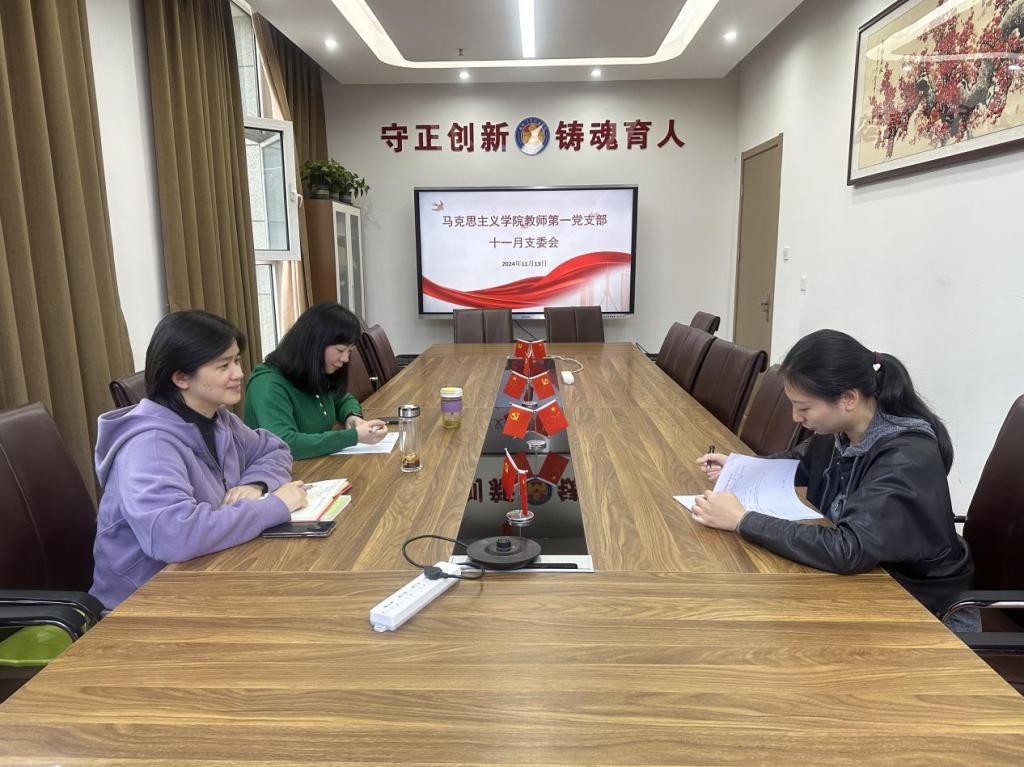 11月13日下午,马克思主义学院教师第一党支部在品读室召开十一月份支委会,会议由支部书记洪妮主持。