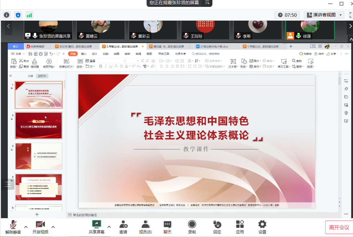 4月2日晚上,马克思主义学院线上开展《毛泽东思想和中国特色社会主义理论体系概论》课程第四次集体备课会。会议由教研室主任徐莲教授主持,该门课程全体授课教师参加。