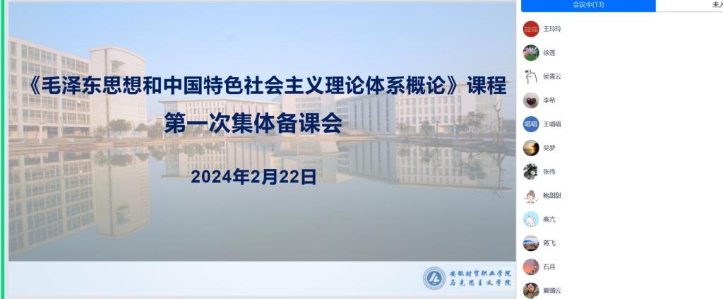 为扎实推进《毛泽东思想和中国特色社会主义理论体系概论》教学工作,2月22日,马克思主义学院《毛泽东思想和中国特色社会主义理论体系概论》课程组召开新学期首次集体备课会。“概论”课程教研室主任徐莲主持备课会,课程组全体教师参加会议。
