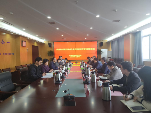 近日,安徽交通职业技术学院党委副书记杨菲铃率队来校调研交流。学校党委副书记、副校长何翔,党委委员、纪委书记罗虹及相关部门负责人参加座谈交流会。