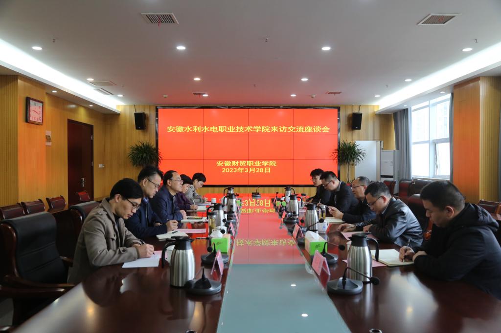 3月28日上午,安徽水利水电职业技术学院党委委员、安徽省水利职工中专学校(安徽水利干部学校)副校长陈平来校调研交流。学校党委副书记、副校长何翔出席座谈会,组织人事处主要负责人及相关人员参加。