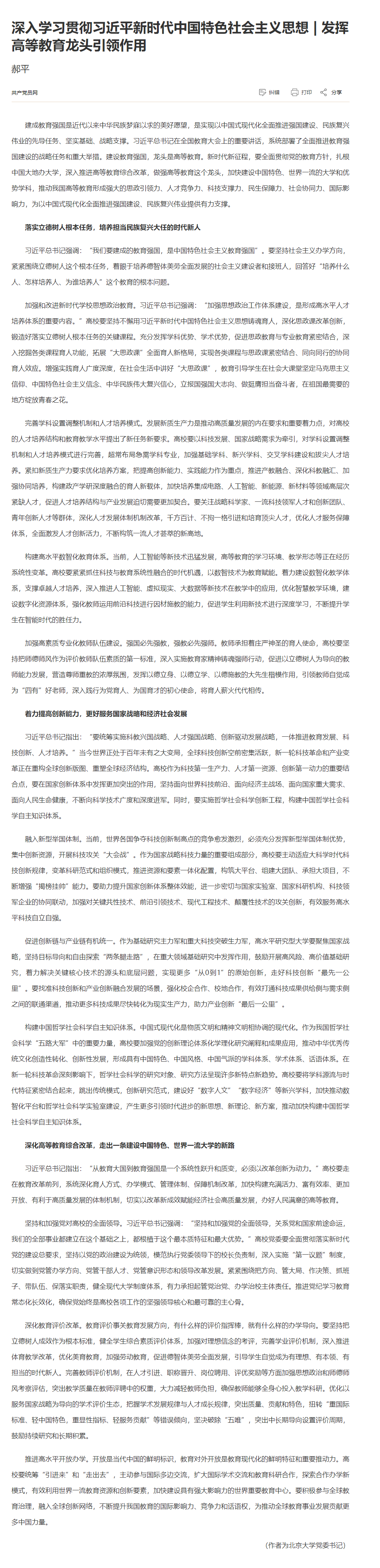 深入学习贯彻习近平新时代中国特色社会主义思想 | 发挥高等教育龙头引领作用