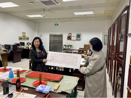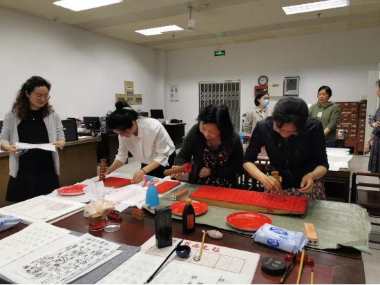 王永平一行先后参观考察了古籍阅览室、古籍善本库、民国及外文经典书库,现场参与体验了古籍雕版印刷和线装装订流程,双方就精品书库空间建设、特色资源建设和过刊收藏利用等内容进行了深入沟通。