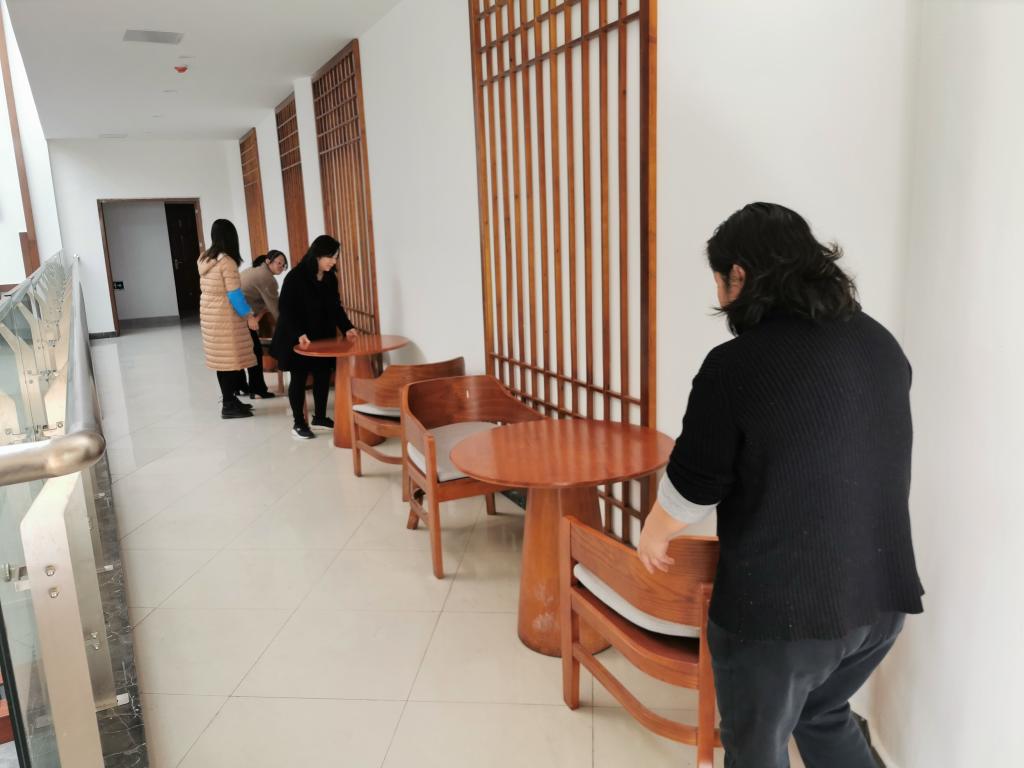 随着图书馆装修改造的完成、空调的开放,丰富的馆藏资源为读者营造了良好的阅读氛围,吸引了一大批读者前来学习。面对读者们的高涨的学习热情,支部书记王永平在保证馆内布局美观、满足消防疏散通道畅通的前提下,充分利用馆内空间,带领支部党员在三楼走廊增设阅览桌椅,以供读者使用,党员同志们分工有序,将桌椅搬至走廊处摆放整齐,并打扫清理整洁,收获了来馆读者的点赞好评。
