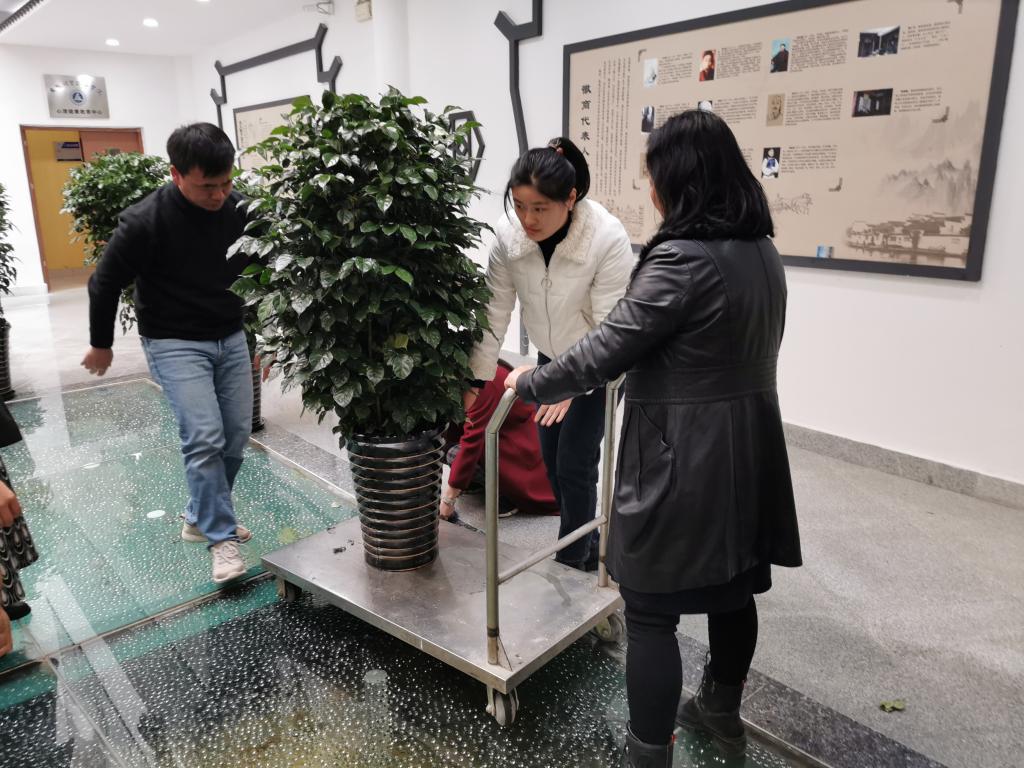 为创设干净整洁、文明和谐的阅读环境,进一步推进落实党史学习教育“学史力行办实事”实践活动取得实效。12月6日下午,在支部书记王永平的带领下,全体支部党员先是将新采购的绿植根据楼层、书库进行合理摆放,然后统一进行了培土浇水、清洗除尘。绿植的布置,丰富了图书馆建筑空间,美化了阅读场所,净化了馆内空气,也为读者阅读增添了丝丝绿意。