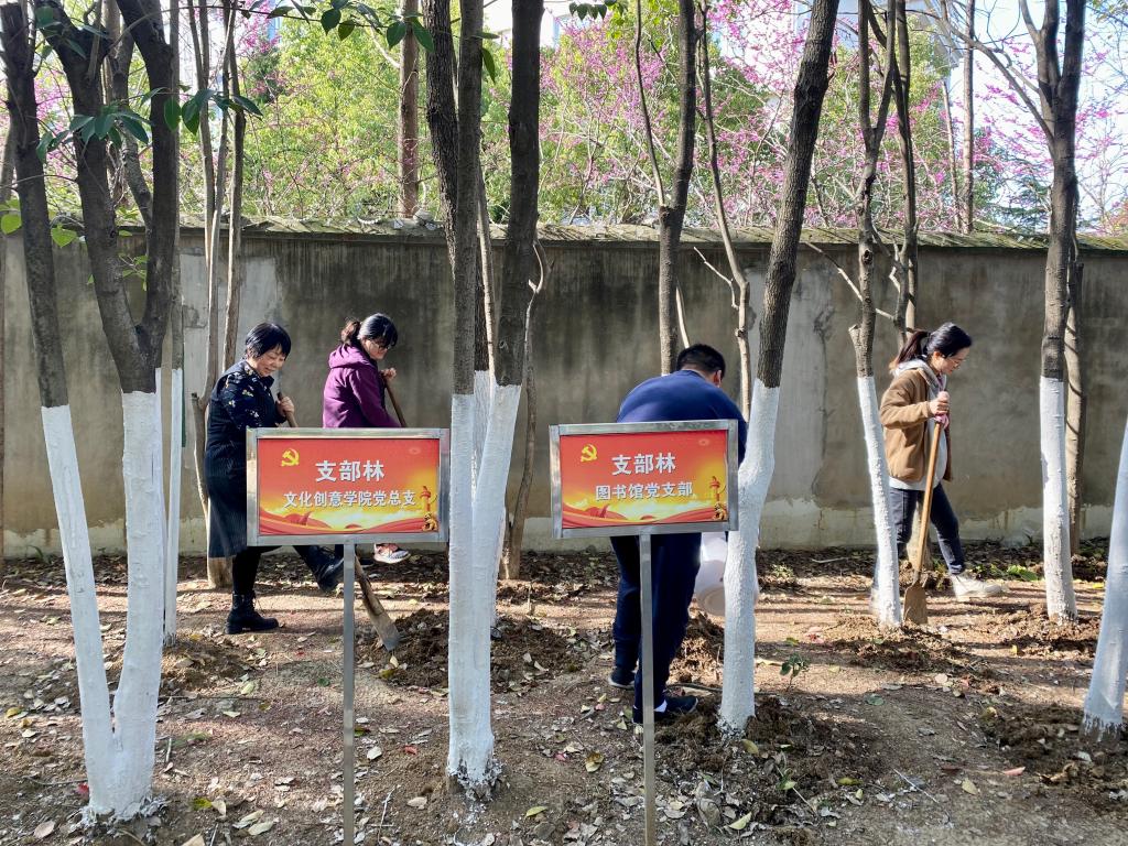 阳春三月,万象更新,正是植树绿化好时节。为进一步提高全体馆员爱绿植绿护绿的文明风尚,3月14日,图书馆党支部在图书馆支部林开展了“春日护林”植树节主题党日活动。