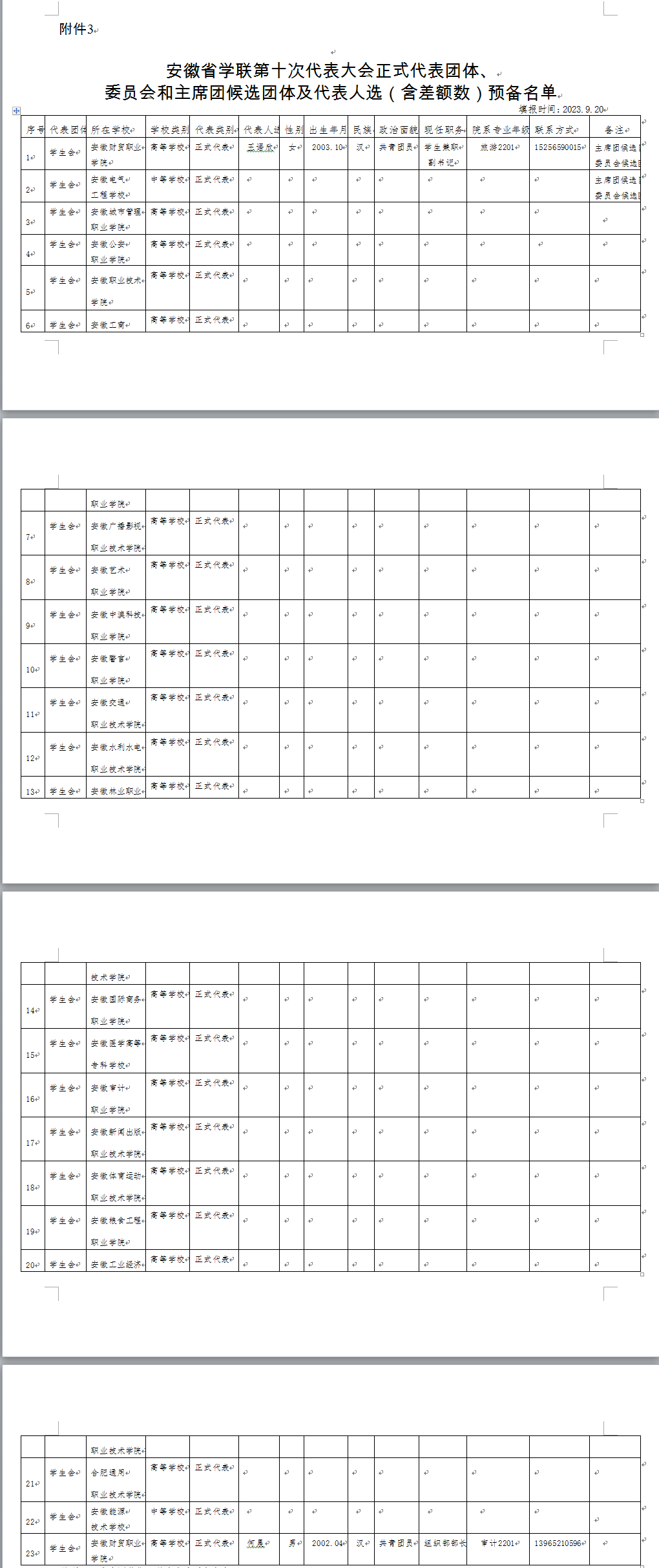 根据团省委、省学联部署要求,依据《关于推选安徽省学生联合会第十次代表大会代表团体和第十届委员会、主席团候选团体及各团体代表的通知》(皖青联[2023] 38号)文件精神,现将beat365中文官方网站推选名单公示如下: