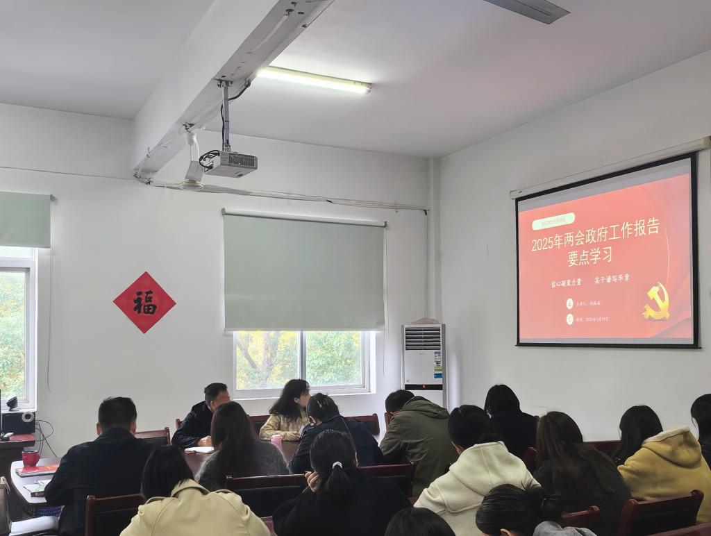 为深入学习贯彻2025年全国两会精神,3月19日下午,文化创意学院在综合楼210党员活动室开展了以“学习两会精神 实干谱写华章”为主题的专题党课。党课由党总支副书记倪晶晶主讲,全体党员参与学习。