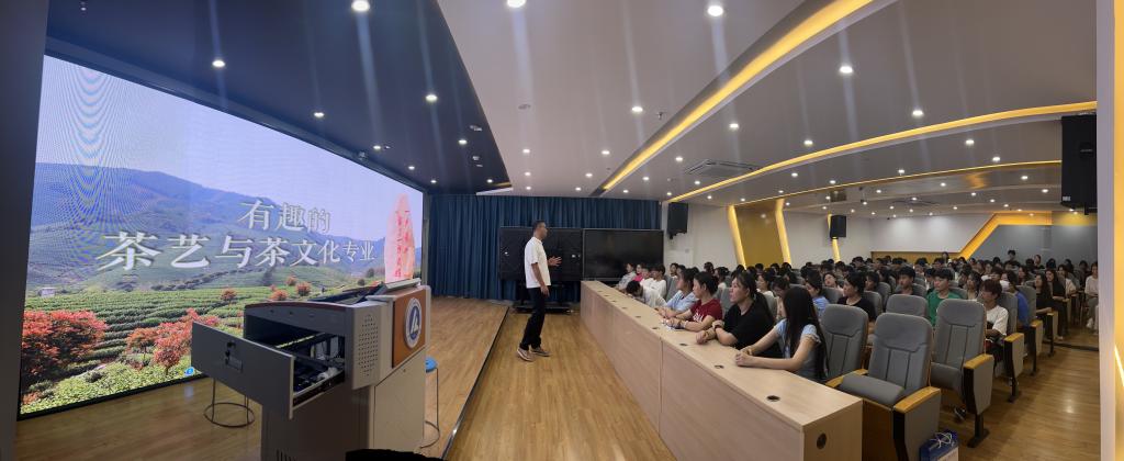 9月12日,茶艺与茶文化专业教师朱大伟,以“有趣的茶艺专业,‘以茶为伴’的人生副本怎么写?”为题开展专题讲座,用学生们喜闻乐见的方式,系统地介绍了中国茶叶行业的发展的社会背景、产业背景和职业前景,介绍了适合学生发展的职业赛道,分享了对应赛道的关键性成就的攻略。最后,邀请上海茶里厢艺术空间创始人、茶艺1301班张霖同学分享了自己的创业经历。