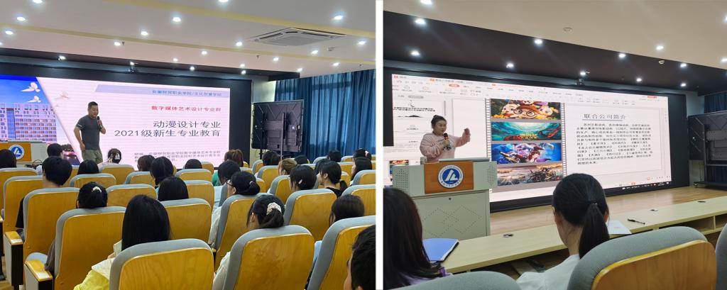 本次新生专业教育创新了形式,采用“线上直播”与“线下宣讲”多种形式开展。同时创新了专业教育讲座的内容,以话题式、主题式开展宣讲,大大提升了新生对专业的兴趣与认同。数字媒体艺术专业教研室主任胡杨、副主任应莉和相关专业骨干教师分三个会场向各专业新生进行“专业初体验”宣讲,本次专业教育从“广告人的自我修养”、“新动漫人是怎样炼成的”、“环艺人的大千世界”为主题,从各专业出发,向新生介绍了各专业的历史沿革、专业特色、人才培养方案、实践教学、学分要求、就业去向等,培养了新生的专业学习兴趣,加强了新生对专业的认同。
