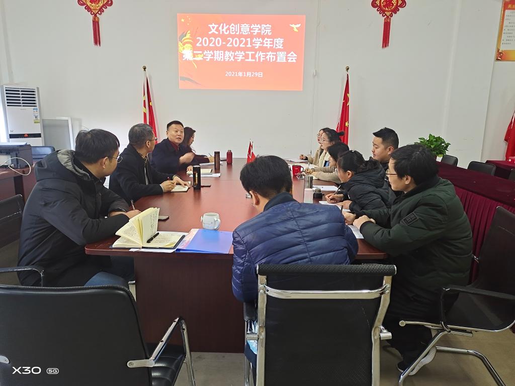 1月29日上午,文化创意学院召开2020-2021学年度第二学期教学工作布置会,会议由文化创意学院党总支书记张克主持,文化创意学院领导班子、教研室主任、行政人员、骨干教师参加了会议。