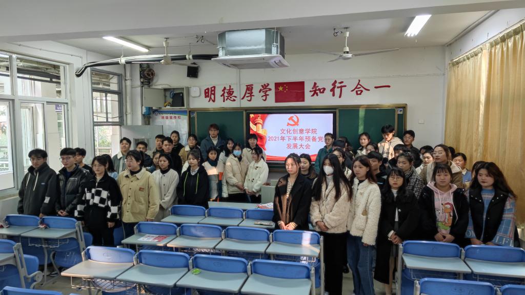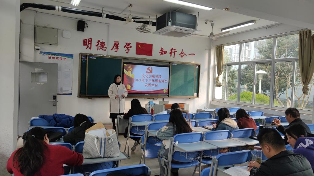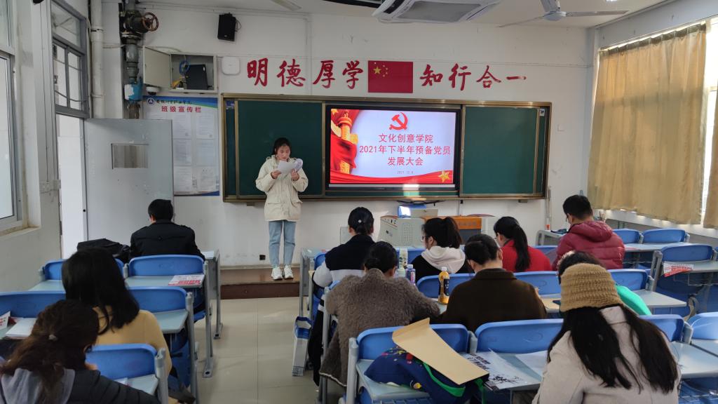 2021年12月8日下午,文化创意学院学生党支部在3104教室召开2021年下半年党员发展大会,大会旨在吸纳优秀学生以壮大党员队伍,为支部发展打下坚实的基础。学生党支部9名正式教师党员、49名党员发展对象以及入党介绍人参加大会,学生党支部书记宋凌云主持会议。