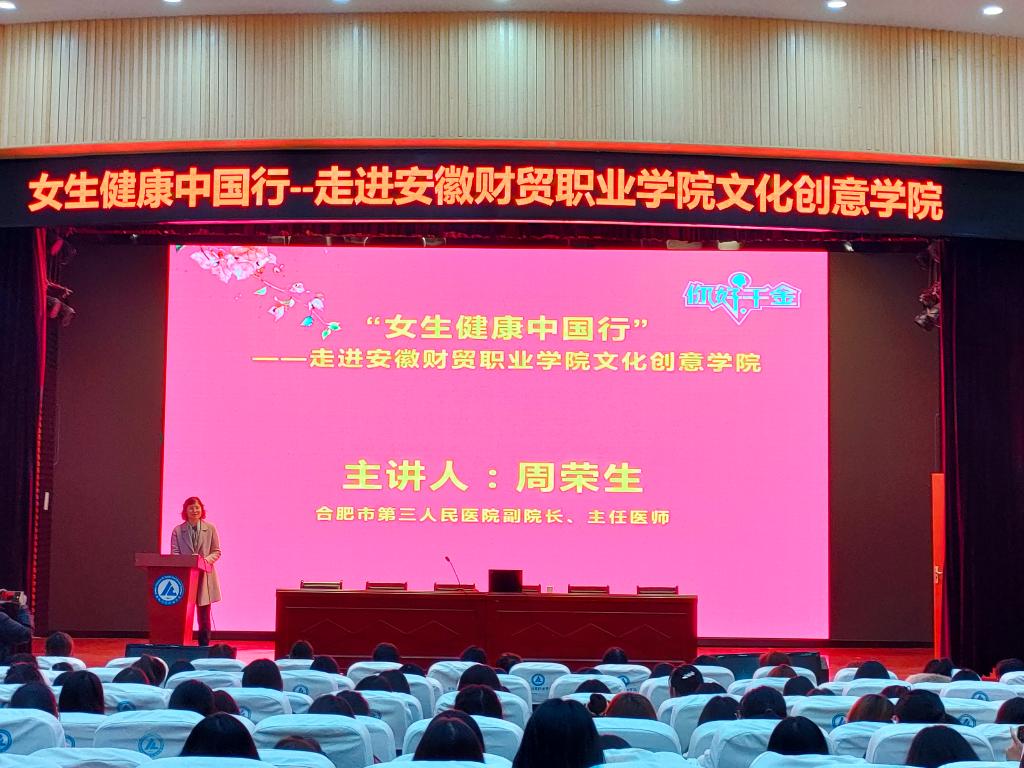12月14日晚,文化创意学院邀请合肥市第三人民医院副院长、主任医师周荣生来我院开展“女生健康中国行——大学生恋爱态度和性心理”的女性健康知识科普讲座。讲座由专职辅导员石玲主持,文化创意学院21级全体女生现场聆听。