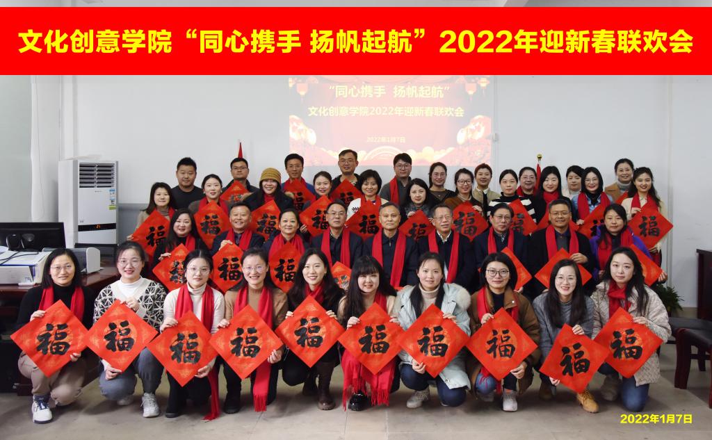 丑旧寅新宏图展,牛归虎跃春意浓。2022年1月7日,文化创意学院在综合楼210开展了“同心携手,扬帆起航”2022年迎新春联欢会,校领导张志祥、刘银国、何翔、胡戴新、罗虹莅临现场与大家欢聚一堂,喜迎新春。