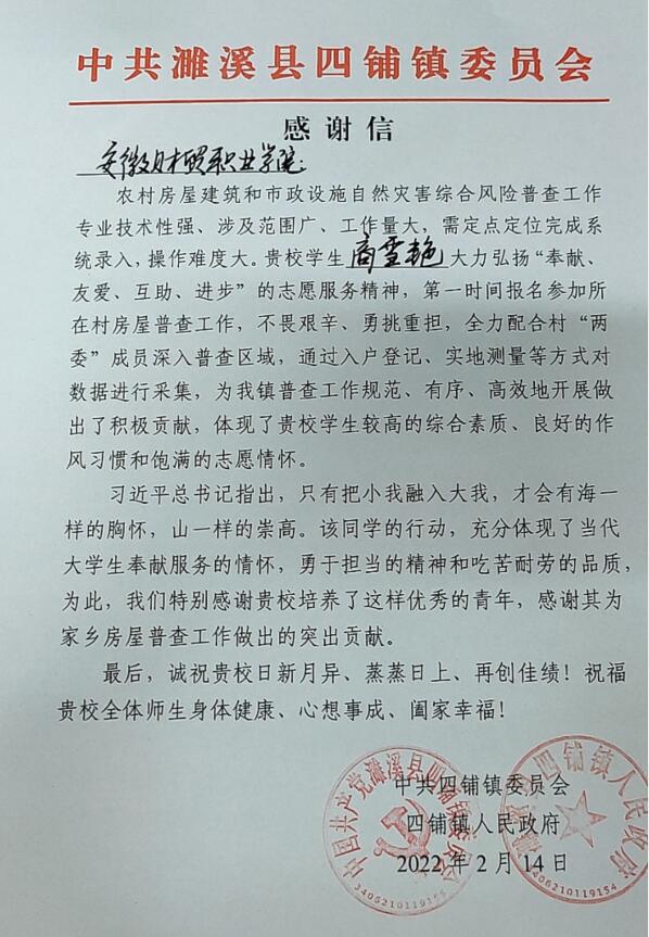 商雪艳同学的行为彰显了青年学子的责任和担当,体现了艰苦奋斗,乐于奉献的优秀品质,受到了地方党委和政府的充分肯定和高度赞誉,展现了我院在学生实践成长成才中扎实做好立德树人工作的成果。我院一直以来高度重视学生的思想政治教育和志愿服务工作的教育,把奉献他人作为己任,教育学生为了家乡的发展、祖国的建设贡献出青春力量,以更加昂扬的姿态建功新时代!