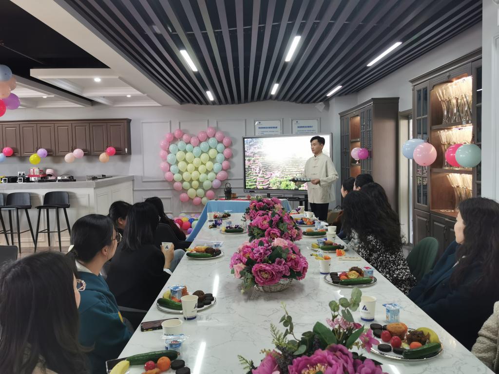 春风拂面,茶香怡人。3月9日下午,文化创意学院在酒店实训室举办“茶语花香 文苑芬芳”庆三八茶艺沙龙活动。校工会副主席许卫民、办公室主任王寿元、文化创意学院全体教职工参加了活动。