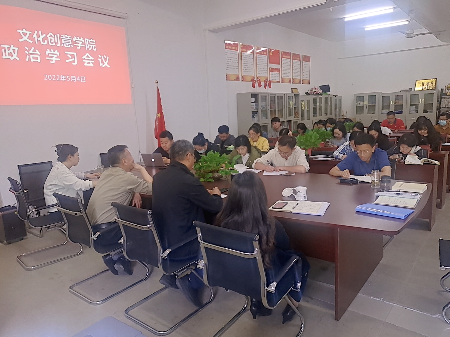 凝心聚力,坚守初心。5月4日下午,文化创意学院召开政治学习会,会议由党总支书记张克主持,院长郭湘如、副院长高静、党总支副书记宋凌云及全体教师参会。